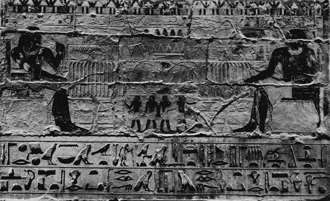 En la sala de ofrendas había dos falsas puertas: portales simbólicos para las almas de los muertos. La falsa puerta de Nianjjnum fue destruida por los saqueadores.